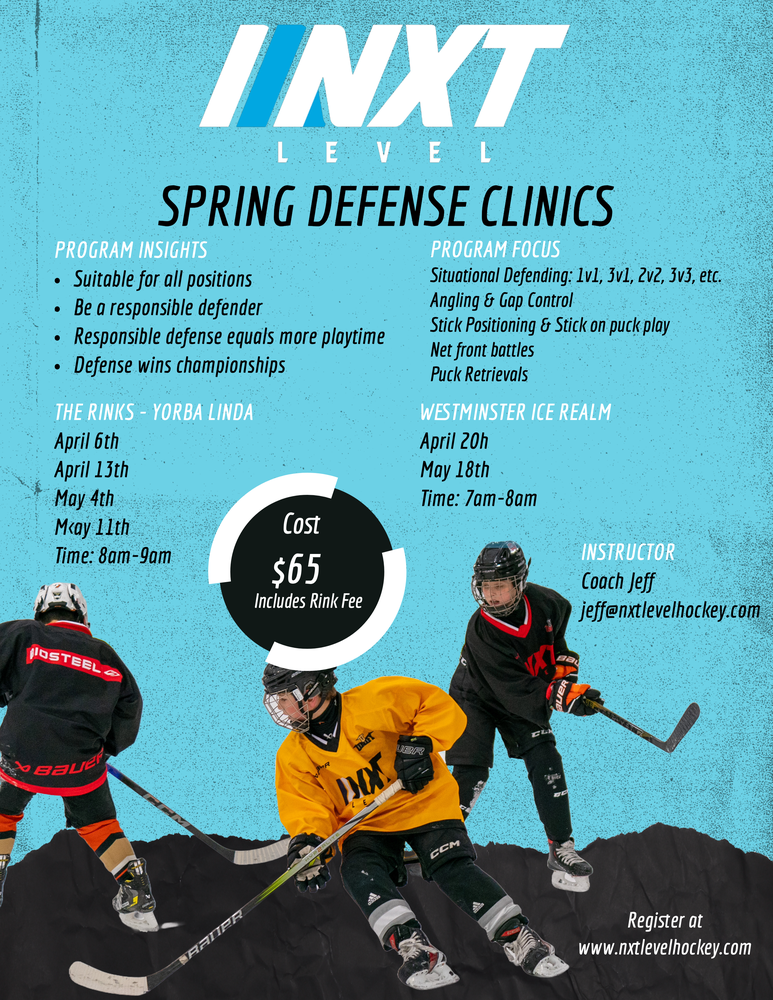 At NXT Level Hockey, we believe the best offense is a strong defense. That’s why we’re excited to announce our Spring Defense Clinics, designed to help players of all positions become smarter and more effective on the ice. After all, responsible defending means more ice time—because defense wins championships.